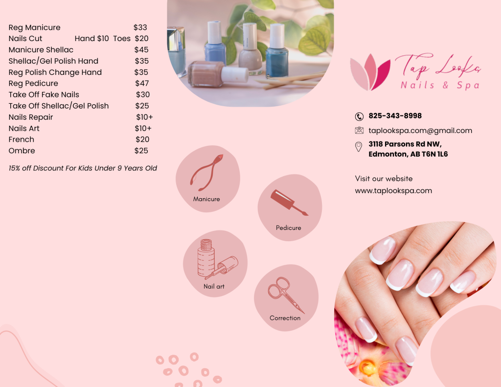 Below is TapLook Mobile Manicures Halifax Services price list: